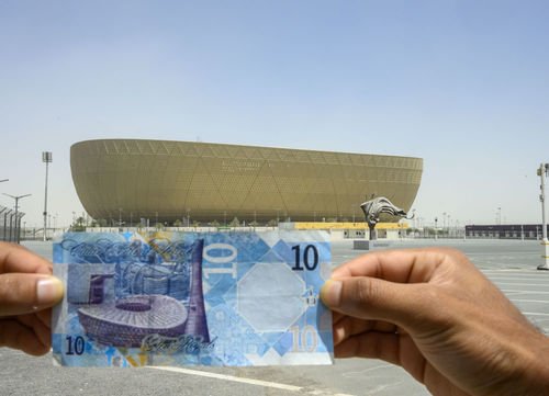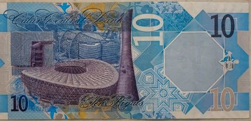 Катарын 10 риал цаасан мөнгөн тэмдэгт дахь Лусаил биеийн тамир спортын ордны зураг.
